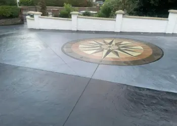 Approximately every 3-4 years imprinted concrete driveways and patios should be re treated with paving sealer . The imprinted concrete will then only require minimal maintenance to maintain that ‘just laid’ look.